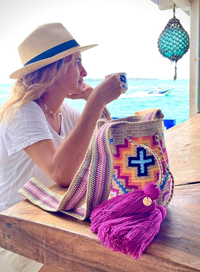 Explore our portfolio to see the beautiful mochilas and accessories we offer, showcasing the artistry of Colombian craftsmanship.